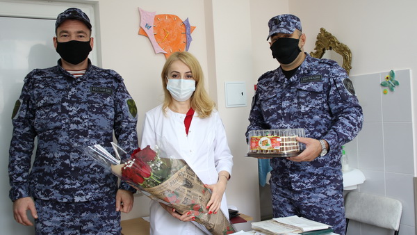 Соблюдая все противоэпидемиологические нормы, росгвардейцы вручили медицинским работникам цветы и сладкие подарки, сообщили в пресс-службе ведомства.