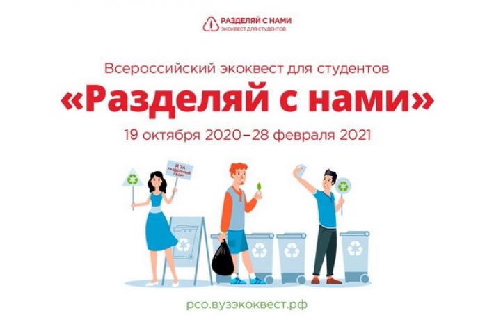 Всероссийский квест «Разделяй с нами»![]() Стартовал ежегодный всероссийский квест для студенческих команд «Разделяй с нами», направленный на внедрение раздельного сбора мусора в вузах и вовлечение молодого поколения в ответственное обращение с отходами.