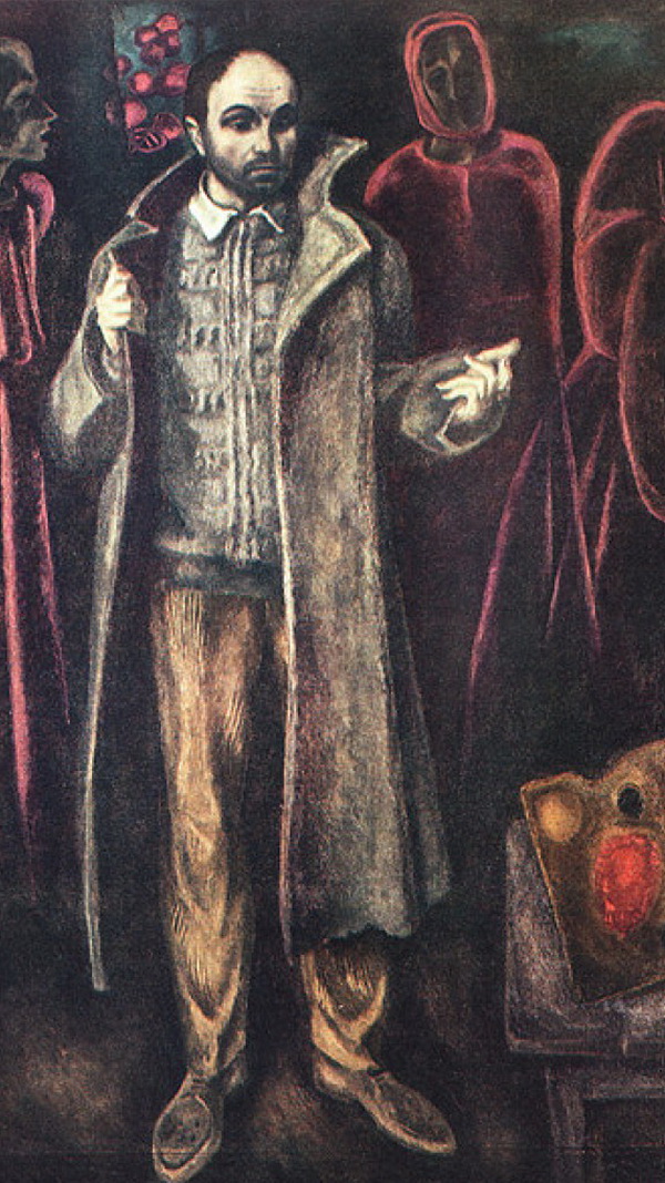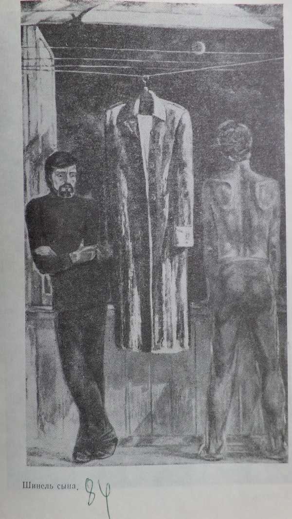 – Огромное воздействие на И. Наседкина оказали произведения известного мастера живописи Виктора Попкова, – поясняет Жаухар Мустафаевна. – Находясь под влиянием его картин, художник из Нальчика задаётся вопросом: «А как бы я решил подобную тему?». И он вступает в творческое соревнование с ним, стремясь отыскать иное, может быть, даже более глубокое решение темы. Своего рода перекличку с картиной «Шинель отца» В. Попкова мы видим в полотне И. Наседкина «Шинель сына». Нет ничего общего в композиции – авторов объединяет лишь то, что их интересуют темы семейных ценностей и взаимоотношений отцов и детей.