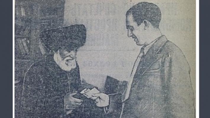 На снимке: Кязима Мечиева принимают в Союз писателей, билет вручает Керим Отаров