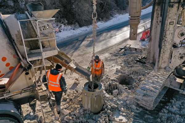 Для этого устраивают подпорные стены в грунте из буронабивных и буросекущих свай. На сегодняшний день специалисты устроили более 5 тыс. свай из 8,5 тыс., что составляет 62% от общего объёма работ. С начала капремонта в ноябре 2019 года дорожники полностью завершили работы на двух объектах: близ с. Верхний Баксан и в с. Бедык Эльбрусского района. Водителям на этих участках виден лишь железобетонный ростверк высотой 50 см, поскольку подпорные стены устроены на глубину 10 и 18 м.