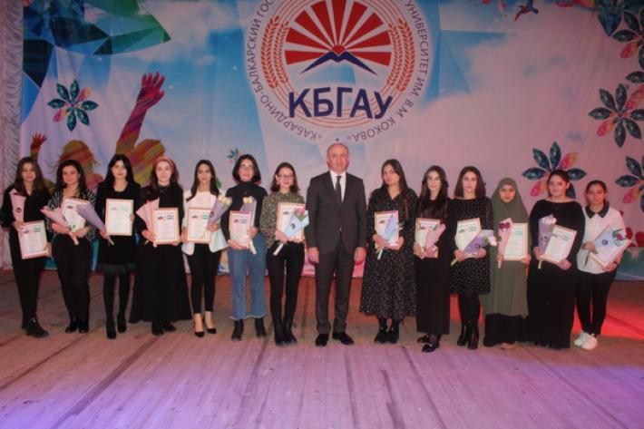 Приятным сюрпризом для виновниц торжества стало вручение грамот КБГАУ за добросовестный труд и активное участие в общественной жизни вуза. Наградами отмечены сотрудницы университета и студентки.