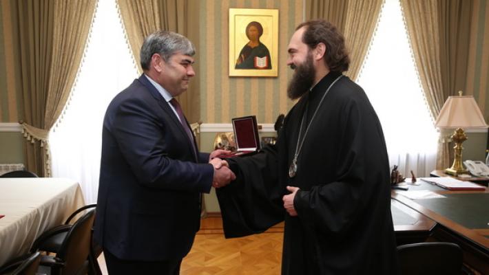 Казбек Коков вручил архиепископу Пятигорскому и Черкесскому Феофилакту орден «За заслуги перед Кабардино-Балкарией»![]() Сегодня в Пятигорске Глава КБР Казбек Коков вручил архиепископу Пятигорскому и Черкесскому Феофилакту орден «За заслуги перед Кабардино-Балкарской Республикой». Руководитель епархии награждён высшей государственной наградой Кабардино-Балкарской Республики «за значительный личный вклад в развитие духовных и культурных традиций, укрепление межконфессионального согласия». В эти дни исполнилось десять лет со времени образования Пятигорской епархии. Вручая государственную награду Кабардино-Балкарской Республики, Казбек Коков отметил то огромное внимание, которое руководитель Пятигорской епархии неизменно уделяет Кабардино-Балкарии. За десятилетний период служения архиепископа Феофилакта Пятигорская епархия внесла большой вклад в укрепление межконфессионального согласия в республике, а служители Русской православной церкви в Кабардино-Балкарии постоянно участвуют в мероприятиях, направленных на формирование здорового образа жизни среди населения, оказывая помощь нуждающимся независимо от вероисповедания или национальной принадлежности. Архиепископ Феофилакт, в свою очередь, сказал: «Люблю Кабардино-Балкарию и служу её народу, на протяжении многих мы лет живём в одном мире, одном доме, одинаково любим нашу землю и трудимся на её благо. Это драгоценное чувство семьи, дружбы всегда будет неотъемлемой частью жизни нашей многонациональной многоконфессиональной республики». Он выразил Казбеку Кокову особую благодарность за поддержку в наиболее сложные периоды пандемии.
