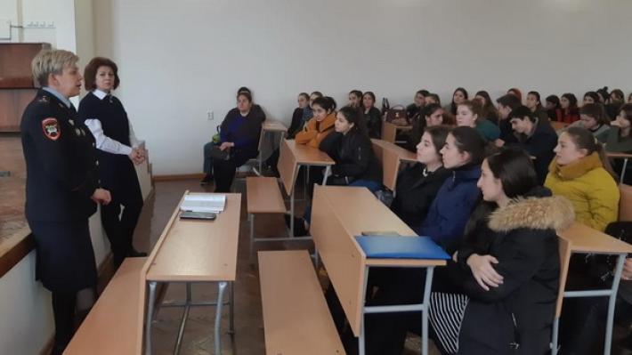 К студентам медицинского и педагогического колледжей КБГУ им. Х.М. Бербекова пришли инспектор по делам несовершеннолетних отдела полиции №1 управления МВД России по Нальчику Галина Яковлева, заведующая отделом по психологической и социальной работе наркологического диспансера Минздрава КБР Инна Кабалоева, практический психолог и преподаватель психологии медицинского колледжа Татьяна Абазокова. Они провели серию профилактических комплексных лекций, общей концепцией которых стал лозунг «Здоровое и законопослушное поколение».