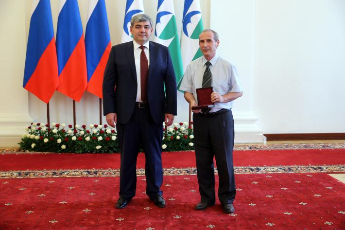 Казбек Коков вручил государственные награды республики![]() Глава КБР Казбек Коков и Заслуженный деятель науки Кабардино-Балкарской Республики, ведущий научный сотрудник Высокогорного геофизического института Виктор Разумов Накануне празднования Дня государственности Кабардино-Балкарии в Доме Правительства состоялось торжественное вручение государственных наград жителям республики, особенно отличившимся в труде на благо малой родины. - Эта дата, определившая государственно-правовое устройство и общественно-политический облик Кабардино-Балкарии, олицетворяет весь её исторический путь, служит символом единения и сплочённости, дружбы и взаимопонимания, - сказал, обращаясь к участникам торжественного мероприятия, Глава Кабардино-Балкарии Казбек Коков. – Это событие положило начало преобразованию всех сторон жизни наших народов, политического и общественного устройства, открыло широкие перспективы для их развития. За прошедшие годы наша республика добилась впечатляющих результатов. Важно ценить каждый период, каждый этап пройденного исторического пути, высоко чтить заслуги предшествующих поколений, внесших весомый вклад в становление и развитие Кабардино-Балкарии, продолжать их славные традиции, созидательным трудом приумножать успехи и достижения республики. Такая преемственность поколений – истинное служение своему народу – отличает всех отмеченных сегодня государственными наградами и почётными званиями. Два участника торжественной церемонии удостоены благодарностей Президента РФ Владимира Путина – это генеральный директор Ресурсного центра развития волонтёрства КБР Татьяна Алексейчик и заместитель министра просвещения, науки и по делам молодёжи республики Ачемез Мокаев. Высокие награды республики получили представители самых разных профессий: строители и врачи, работники сфер образования и культуры, научные деятели, профессионалы в области социальной защиты, сельского хозяйства, физкультуры и спорта.