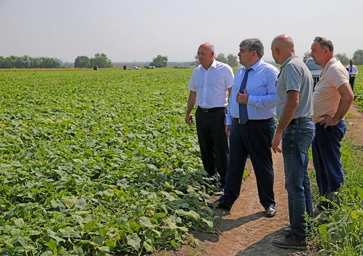 В Ново-Ивановском Казбек Коков побывал на полях, где полным ходом идет уборка кукурузы на зерно, – работники сельскохозкооператива «Ленинцы» уже завершили уборку зерновых колосовых культур. На предприятии работают 313 человек. Кооператив выращивает озимые пшеницу и ячмень, овес, горох, подсолнечник, сою, кукурузу на силос, однолетние и многолетние травы.