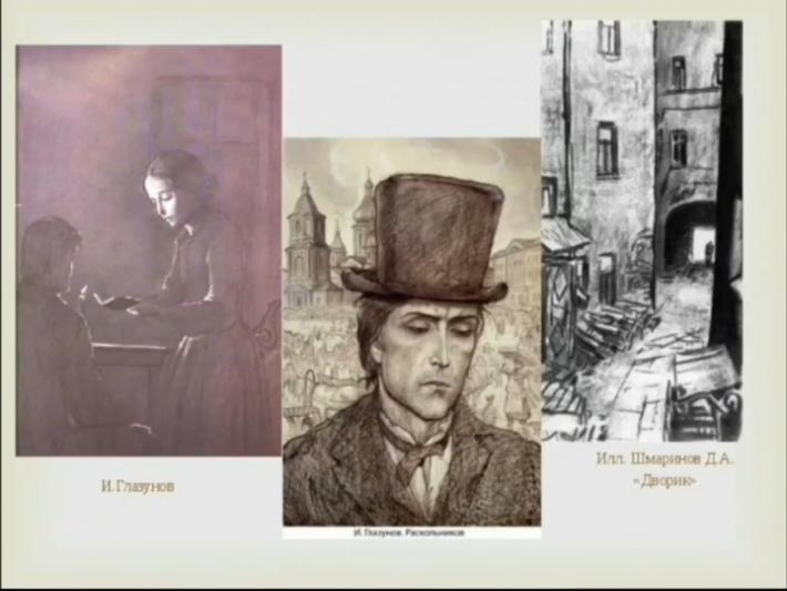 Что касается художника и скульптора Михаила Шемякина, то его работы на темы сочинений Достоевского невозможно спутать ни с чьими другими. Особая техника иллюстраций демонстрирует тончайшие текстурные переходы в игре светотени со свойственной автору долей театральности. Сны и видения Раскольникова разложены художником до молекул в серии работ, выполненных с 1964 по 1969 годы.