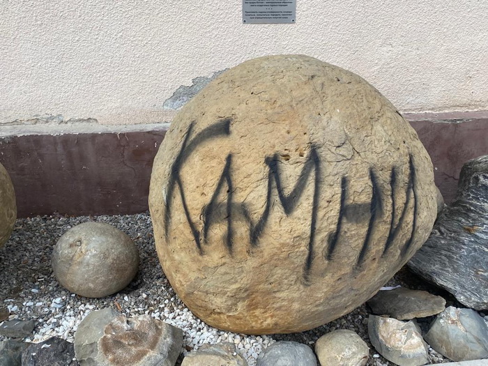 В ночь на минувшее воскресенье нальчикский Арбат посетил вандал. Но его целью была не прогулка и не ознакомление с арт-объектами. От преступных действий этого варвара пострадал музей камней, собранный издателем и краеведом Виктором Котляровым. Камни оказались изрисованы и исписаны чёрной краской.