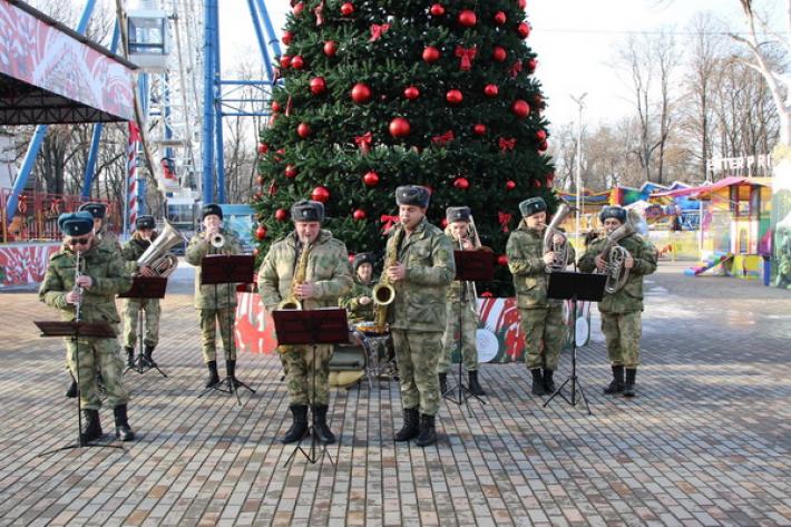 Военные марши и вальсы, джазовые композиции и попурри из новогодних песен прозвучали в Атажукинском парке в Нальчике. Зрители тепло приняли военных музыкантов, а каждая композиция сопровождалась бурными аплодисментами.