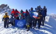 Памятная доска на вершине скалистого хребтаВ минувшие выходные состоялось ежегодное зимнее восхождение команды молодёжного клуба Русского географического общества «Альтаир». |