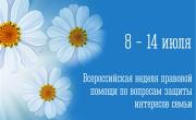 Неделя правовой помощи по вопросам защиты интересов семьи пройдёт в Кабардино-БалкарииС 8 по 14 июля 2024 года на территории Кабардино-Балкарии пройдёт Всероссийская неделя правовой помощи по вопросам защиты интересов семьи. |