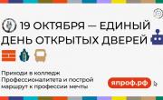 В России пройдёт Единый день открытых дверей кластеров «Профессионалитета»Единый день открытых дверей кластеров «Профессионалитета» пройдёт в 79 регионах России 19 октября, в том числе и в Кабардино-Балкарской Республике. В мероприятиях примут участие... |