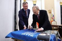 Помимо автографа на бригадном знамени российский лидер оставил надпись «С Богом».
