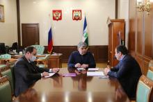 Сегодня Глава КБР Казбек Коков провел рабочую встречу с министром здравоохранения КБР Рустамом Калибатовым и главным врачом Центральной районной больницы Эльбрусского муниципального района Хабибуллахом Тиловым.