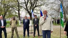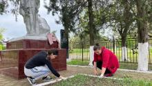 Накануне памятного дня у мемориального комплекса участникам ликвидации аварии на ЧАЭС из Эльбрусского района в рамках всероссийского проекта «Хранители истории» ученики восьмого класса пятой гимназии под руководством классного руководителя Ф. Буранова провели субботник.