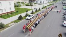 Под звуки победного марша торжественным строем юнармейцы, волонтёры и учащиеся пронесли по центральной улице города один из главных символов воинской славы России – георгиевскую ленту, сообщает пресс-служба администрации Терского района.