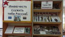 Перефразированная строка из современной патриотической песни, посвящённой защитникам Отечества, послужила названием для книжно-иллюстративной выставки «Имею честь служить тебе, Россия!». Она оформлена на главной выставочной площадке Государственной национальной библиотеки КБР им. Т.К. Мальбахова и посвящена героям специальной военной операции.